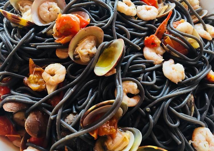 Espaguetis Negros Con Gambas Y Almejas Receta De Au Aragon Cookpad Pasta E Zucchine Per Diabetici