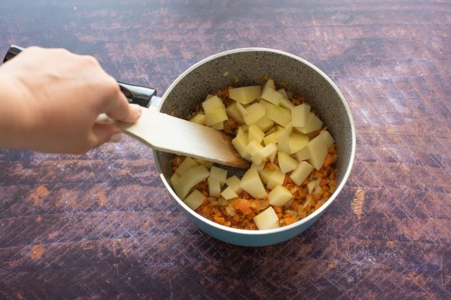 La pasta fagioli e patate ha una ricetta semplice. Prendete un tegame e versatevi un giro dolio doliva. Scegliete i fagioli che piu vi piacciono.