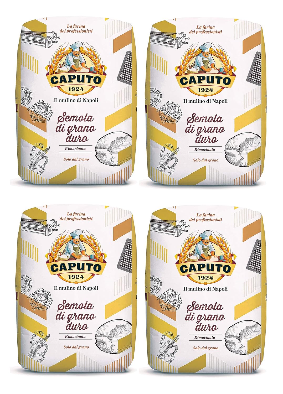 Amazon Com Antimo Caputo Semola Di Grano Duro Rimacinata Semolina Flour 2 2lb 1kg Bag 4 Pack All Natural Dough For Fresh Pasta Grocery Gourmet Food Pasta Frolla Senza Lievito